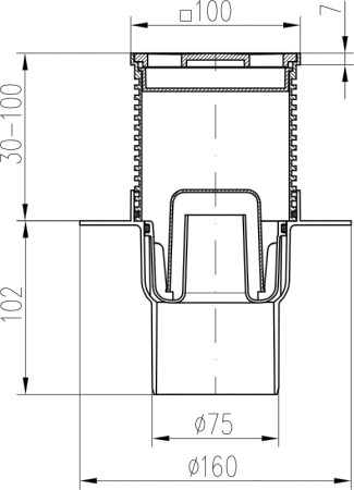 Vyrábí se s plastovým nebo nerezovým rámečkem. Límec vpusti lze použít pro napojení hydroizolační nebo bitumenové fólie. Vyrobeno z PP a nerezové oceli DIN 1.4301. Zatížení K3-300 kg, odolnost do 90°C, zkoušeno dle normy EN 1253.