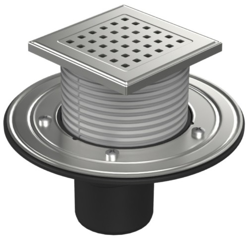 Vpusť je určena pro vnitřní a venkovní použití. Obsahuje suchou klapku a vodní hladinu. Vyrobeno z PP, PS a nerezové oceli DIN 1.4301. Zatížení K3-300 kg, odolnost do 90°C, zkoušeno dle normy EN 1253.